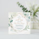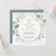 Instante moderno e veja o convite com uma estrutura geométrica rodeada por folhas de eucalipto e verde com uma dica de azul. Dentro são os detalhes do seu evento em verde escuro junto com o título e o nome do novo bebê em tom de ouro elegante, sobre uma lavagem a aquarela pastel com manchas de brilho de ouro falso. A parte de trás é uma sombra correspondente de verde azul macio. Este simples e rápido convite é neutro em termos de gênero e funciona para um rapaz ou uma rapariga.