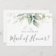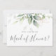 Cartões de madrinha de casamento bonitos com aquarela eucalipto e folhas de ouro.