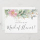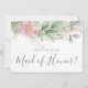 Cartões de madrinha de casamento bonitos, com cor-de-água floral rosa pincelada, eucalipto e folhas de ouro.