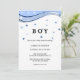 Flores azuis para o menino e este convite é caracterizado como cheio de amor e inocência