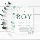 Convites Eucalyptus - Letra Botânica Chá de fraldas