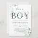 É um convite para chás de fraldas pintado de cor d'água eucalipto e folhas verdes com letras verdes botânicas. Para personalização mais avançada deste design, clique no link Personalizar mais para alterar a fonte, o tamanho e a cor.