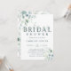Este chá de panela de casamento apresenta cor d'água eucalipto e folhas verdes pintadas com letras verdes botânicas.