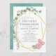 Eucalipto geométrico de tendência, verde-verde e rosas cor-de-rosa-pincel primeiro convite à comunhão sagrada com moldura geométrica dourada e lavagem com aquarela de menta inversa.