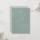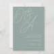 Um belo convite de casamento baseado em tipografia, com monograma, que apresenta suas iniciais em letras de script sobredimensionadas no topo, em tons em tons para um efeito de marca d'água. Personalize com seus detalhes de casamento em letras clássicas de serif alinhadas no canto inferior direito. A nossa via colorida Eucalyptus é uma mistura elegante de verdes empoeirados, com uma inscrição verde-clara e branca num fundo verde-sábio.