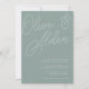 Um belo convite de casamento baseado em tipografia, com os seus nomes em letras de escrita sobredimensionadas no topo, em tons de tons para um efeito de marca d'água. Personalize com seus detalhes de casamento em letras clássicas de serif alinhadas no canto inferior direito. A nossa via colorida Eucalyptus é uma mistura elegante de verdes empoeirados, com uma inscrição verde-clara e branca num fundo verde-sábio.