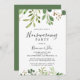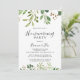 Este simples convite de festas floral floral de eucalipto é perfeito para uma nova celebração moderna. A design apresenta lindas folhas verdes de eucalipto pintadas artesanalmente, dispostas em formas geométricas, inspirando beleza natural.