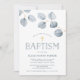 Este convite simples e elegante do Batismo apresenta um simples bando de aquarelas eucalipto e uma falsa cruz de ouro, com texto moderno sobre um fundo branco limpo para um olhar minimalista espantoso. Este estilo neutro por gênero funcionará perfeitamente para uma rapariga ou para um rapaz.