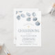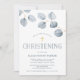 Este convite de Christening simples e elegante apresenta um simples monte de aquarela eucalipto e uma cruz falsa de ouro, com texto moderno sobre fundo branco limpo para um olhar minimalista espantoso. Este estilo neutro por gênero funcionará perfeitamente para uma rapariga ou para um rapaz.
