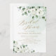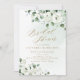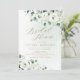 Moderno desenho de cor aquática branca floral eucalipto verde floral e cor dourada, com um monograma de casal nas costas, elegante e na moda, convites de chá de panela de excelente para casamento rústico, casamento botânico e casamento de praia. Ver todas as peças correspondentes na coleção