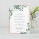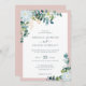 Crie a suíte de casamento romântica perfeita com este elegante cartão de convite com um buquê sofisticado de flores rainhas brancas noturnas (epiphyllum hookeri), juntamente com folhas de eucalipto de cor clara e arejada e complementadas com folhas de ouro espumantes (impressas) sobre um fundo branco clássico cercado por uma delicada armação rosa pálida