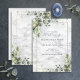 Crie o convite perfeito para o seu casamento botânico moderno, com este design verde suculento de eucalipto azul GORGEOUS, com um fundo de mármore de Carrera, esplash de aquarela, poeira de ouro suja e tipografia de script com letra de tendências. O convite faz parte de uma coleção. Copyright Elegant Invites, todos os direitos reservados.