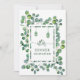An Iftar dinner invitation, in green and white watercolor Eucalyptus botanical border with script calligraphy. The card is easy to customize with your wording, font, font color, paper shape options, and choice of paper types. The gold and white look stunning on the front, while the green border and event details and rsvp on the backside make this ramadan iftar invitation truly unique.