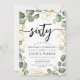 60º Convite de aniversário. Design floral elegante em branco verde e ouro brilhante. Design clássico moderno com cores aquáticas pintadas manualmente, verduras e roteiros de eucalipto eucalipto. Perfeito para uma comemoração de na moda sexagésimo dia. Personalize com seus próprios detalhes. Pode ser personalizado para qualquer idade! Impressos convites Zazzle ou modelo de impressão digital instantânea para download.