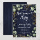 Convite de festas de aposentadoria botânica elegante. Design de clássico no marinho; recursos, cor d'água pintada manualmente, verde-verde eucalipto e fonte de script. Personalize com seus próprios detalhes. Envie-me uma mensagem se precisar de mais personalização.