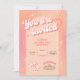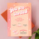 Aproveite a nostalgia com este Convite para eventos comerciais da Trendy no design cor-de-rosa cor-de-pêssego da ranhura, perfeito para a abertura da loja, evento de vendas, festa de funcionarios ou qualquer outro evento comercial ou privado! Apresentando fontes retrorativas, cor de pêssego pastel e cor-de-rosa com espaço para detalhes e logotipo de evento personalizados. Convide convidados para o seu evento em estilo com este moderno design de folheto de marketing de festas de negócios.