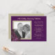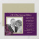 Convide os convidados para uma celebração de aniversário de casamento de prata ou ouro / cerimônia de renovação de votos com modelo de convite personalizado. Personalize facilmente os cartões com flores de lilás roxo escuro e moldura com aparência de aniagem que contém uma foto do casal. Lilases roxos decoram o canto inferior e o verso é bege para combinar com a cor da moldura. A fonte de letra moderna é adicionada em forma de parágrafo com tantas ou quantas palavras forem necessárias.