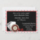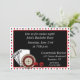 Um convite perfeito para despedidas de solteiro ou eventos de cassino. O design apresenta cartas de baralho, roleta e dados vermelhos com borda de naipe de cartas em vermelho, preto e branco.