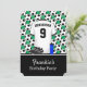 Um convite legal para um evento temático de futebol, como um aniversário ou uma festa do pijama. Este convite de futebol de estilo moderno apresenta uma camisa de futebol na frente com sobrenome e número personalizáveis, um par de chuteiras de futebol e uma garrafa de água, bem como os detalhes do evento. O fundo apresenta bolas de futebol preto e branco em um cenário de campo de futebol. No verso, há um modelo para adicionar os detalhes do seu evento de futebol. Se você precisar de uma cor diferente deste design, entre em contato conosco através da loja giftsbonanza antes de comprar para discutir.