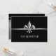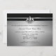 Estes elegantes convites para o evento Silver Black Fleur de Lis apresentam um símbolo de metal prateado Fleur de Lis em fundo preto. A frente lê "Você é Convidado" na imitação de fontes de metal prateado. Personalize com suas informações corporativas, de gravata preta ou de outro evento especial no verso, que apresenta uma Fleur de Lis prateada na borda preta e um plano de fundo gradiente que imita um foco de diamante.