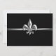 Estes elegantes convites para o evento Silver Black Fleur de Lis apresentam um símbolo de metal prateado Fleur de Lis em fundo preto. Personalize com suas informações corporativas, de gravata preta ou de outro evento especial no verso, que apresenta uma Fleur de Lis prateada na borda preta e um plano de fundo gradiente que imita um foco de diamante.