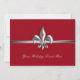 Estes convites vermelhos elegantes do evento do feriado da flor de lis caracterizam um símbolo de prata de imitação da flor de lis do metal em um fundo vermelho da época natalícia. Personalize com seu incorporado, traje de cerimónia, ou a outra informação de evento especial na parte traseira, que caracteriza uma flor de lis de prata em uma listra vermelha e em um fundo do inclinação que imite um projector do diamante.