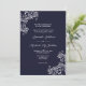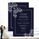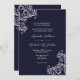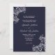 Um Convite Militar Branco Elegante de Casamento de Marinho desenhado com sotaques brancos suaves em um fundo de marinho escuro. O texto em branco inclui: Nomes de pais da noiva e do noivo, Nomes da noiva e do noivo, data de casamento, hora, local e recepção a serem seguidos. O inverso é um fundo de marinho escuro correspondente às Primeiras Iniciais do noivo e do noivo. Para personalizar, basta inserir seus detalhes em nosso modelo fácil, substituindo o texto de exemplo. Este convite está disponível em Impressão ou Download. Para o seu casamento de estilo natural, casamento de estilo militar, casamentos de verão ou qualquer hora. Certifique-se de ver toda a Coleção de Casamentos de Estilo Elegante Branco e Marinho, incluindo a Placa RSVP. Nota: como um alternativo para uma placa RSVP separada, esta coleção tem um segundo convite de estilo que inclui os detalhes de RSVP no contrário.