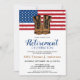 Convites à Reforma Militar de Bandeira Americana - Comemore anos de serviço dedicado e convide amigos e familiares para o seu partido de aposentadoria militar com este Convite à Reforma de Bandeira Americana - design de bandeira Americana com design de botas de combate de ouro. Este convite militar à reforma é também perfeito para convites militares de graduação, para despedir-se, e para receber em casa, mudar de local em personalização. Veja nossa coleção para combinar presentes de aposentadoria militar, presentes de graduação, favoritos para festas e suprimentos. COPYRIGHT © 2021 Judy Burrows, Black Dog Art - Todos Os Direitos Reservados. Exército do Partido dos Reformados Militar inicia Convite de Bandeira Americana