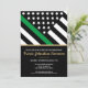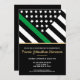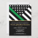 Esta design apresenta uma bandeira militar com listras pretas e brancas, e uma fina faixa verde de linha também. O texto dourado fica acima de todos os detalhes do partido para o sargento graduado, capitão, soldado, tenente ou festa de formatura geral.