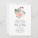 Inflamingos rosa e flores, cartões de convite para casamento personalizáveis para suas especificidades.