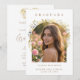 The design includes a front photo within a floral arch, allowing the invitation to be personalized with an image that makes the keepsake more special and unique.