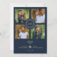 Navy Blue & Fake Gold Minimal Initials Simple Fancy 4 Multi Photos Collage Wedding Invitation with Envelope.