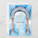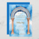 Exquisite Indian Architecture Arch Watercolor in Blue Shades Background Naming Ceremony Invitation Card.