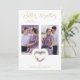 The design stands out with the presence of two photos that can be customized with meaningful images for the couple. The photos frame the floral heart, providing a personal and emotional touch to the invitation. The purple palette conveys a sense of romance and sophistication, while faux gold details add a subtle touch of luxury.