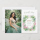 Exquisite Spring Tiara Green & Pink Floral Spanish Quinceañera Photo Invitations Cards.