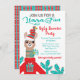 Llama divertiu convites de festas de suéter de Natal Feio com um Llama vestido para o feriado com um chapéu de santa brega com fitas e arcos em volta de seu pescoço longo e um suéter feio, cercado por cacto. Coincide com este! Excelente para qualquer idade! Ilustração desenhada à mão por McBooboos