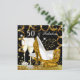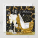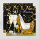 Preto e Dourado 50 Fabuloso Convite de aniversário 50º. Fósforos divertidos e brilho brilho brilhante Altos saltos e design de champanhe espumante.