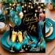 Convites Fabuloso Aniversário Teal Azul Champanhe Vestido É
