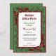 Convites festivos de natal estabeleceram o clima para esta festa de anos. As informações personalizáveis são enquadradas por uma borda rolada, arcos decorativos e sotaques de canto canavial. Fundo brilhante verde e branco floco de neve que também se repete na área de trás. Todo o texto está pronto para você personalizar.