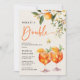 Elegante, faça um duplo convite de aniversário. Design apresenta um fundo creme macio decorado com laranjas e flores de laranja, dois coquetéis spritz com lente de água, uma bela borboleta amarela e um modelo moderno de festa de aniversário que é fácil de personalizar com seus próprios detalhes de evento.