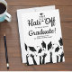 Celebre o formando da faculdade de direito com este convite Festa de formatura com as escalas de símbolo de justiça e chapéus de graduação jogados no ar. A parte de trás apresenta fotos e detalhes da formando. O convite perfeito para comemorar suas conquistas de formando e trabalho de duro.