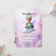 Uma bela princesa fada americana africana tem suas espumantes asas de fada iridescentes rosa pálido abertas e pairando sobre modelos de texto preto editáveis. Ela está vestindo a saia branca prateada mais bonita e superior e é moldada pelo cenário de cor-de-água rosa e púrpura mais bonito. O verso tem o mesmo gráfico com um modelo de texto extra para texto ou informações adicionais que você pode querer transmitir aos seus convidados (instruções, acomodações, etc.). Se não for necessário, basta suprimir a redação para a deixar vazio. Este gráfico 3D é ideal para um conto de fadas caprichoso; princesa de fadas de melanina; jardim encantado ou aniversário de magia feminina temático.