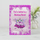Bonitos convites para festas de Natal roxo/rosa, perfeitos para meninas e mulheres, com uma fada de ameixa de açúcar linda, bonita, feliz e elegante com um efeito de joias digitais vestindo um vestido roxo rosa bonito dançando em um pano de fundo de neve lilás com uma bonito borda de sequências digitais roxas, neve e flocos de neve. Diversão, capricho e belos convites de festas de Natal que serão amados por raparigas adolescentes e raparigas e mulheres de todas as idades. Esses convites felizes e bonitos para fadas de ameixa de açúcar são decorados de ambos os lados e todo o texto é totalmente personalizável para atender às suas necessidades. Observe: Todos os produtos do Zazzle são impressos - não existem arcos reais, peles, joias, brilho, peças levantadas ou peças adicionais - TODOS os produtos possuem imagens impressas em formato plano. Se precisar de ajuda para personalizar seu produto, entre em contato comigo pela loja e terei todo o prazer em ajudar.