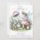 Uma ilustração encantadora com aquarela, apresentando uma doce fada num pequeno jardim encantado com cogumelos e flores silvestres, bebendo de uma xícara de chá, enfeita este elegante e adorável convite para chá de menina com um tema de festa de jardim de fada. Perfeito para comemoração da primavera, eventos de Páscoa, fête de jardim de verão, chá de fraldas piquenique charcado ou para comemoração do ano inteiro em homenagem a uma mãe que ama a floresta encantada, tema de fada.