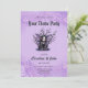 Fada Escura Bonita com Asas Bat. Uma fada escura, fofa, estilizada, com olhos grandes e expressivos e orelhas pontiagudas. Ela tem cabelos pretos e veste um vestido roxo escuro com detalhes de rendas. Asas tipo bat em tons de roxo estendem-se de suas costas. Atrás dela estão ramos negros, negros, com bagas pequenas e redondas. O fundo é uma cor macia e lavanda com padrões florais, criando uma atmosfera branca e ligeiramente gótica.