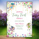 Prepare-se para celebrar o primeiro aniversário mágico da sua fada. Este convite é feito em estilo cartoon, ele retrata fadas mágicas, flores e verde. As cores brilhantes e a design encantadora criam a atmosfera perfeita para uma fabulosa celebração que não deixará os convidados indiferentes. Personalize o seu convite, você pode colocá-lo em impressão ou adquirir uma versão eletrônica do convite.