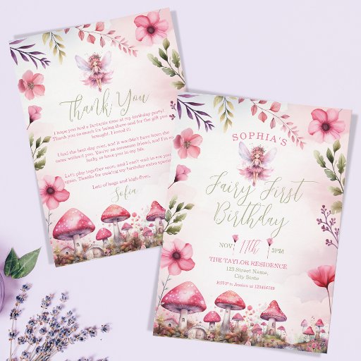 Fada Primeiro Aniversário Encantada Forest Mushroom Obrigado pelo primeiro aniversário da menina