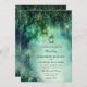 Um convite romântico de casamento com um tema de floresta encantado! Uma ilustração com uma aquarela esbranquiçada da folhagem esmagadora em verde esmeralda, cintilante com luzes de fadas e poeira mágica, decora este primavera de verão cair no convite mágico da floresta. As lanternas penduradas iluminam-se à noite e as matizes esmeraldas profundas e a caligrafia elegante fazem um perfeito casamento mágico de floresta escura. Um convite elegante e moderno para um casamento romântico sombrio, um casamento de conto de fadas escuro, um casamento de romance escuro ou um casamento viking. Perfeito para noivas que amam a vibração romântica escura, o cenário da floresta de conto de fadas, o tema da floresta de fadas ou do jardim de fadas e o verde esmeralda.