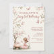 Celebre o seu primeiro aniversário mágico da sua fada com este belamente desenhado convite temático de fadas! Apresentando uma elegante fada de madeira de cor d'água sentada ao lado de um bolo, florais cor-de-rosa macio, borboletas fluentes e guião delicada, este convite é perfeito para uma celebração sonhadora e encantadora.