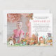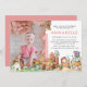 Fada Floresta Primeiro Convite Fotográfico de Aniversário. Design apresenta a foto da aniversariante, ícones da fada florestal, nom, fadas, pássaros, etc. e a primeira em tons brilhantes de rosa. Personalize com os detalhes do seu partido.